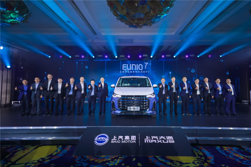 SAIC Motor's first fuel cell MPV, Maxus EUNIQ 7, is unveiled at the SAIC Hydrogen Strategy Conference in Shanghai on Sept 13.